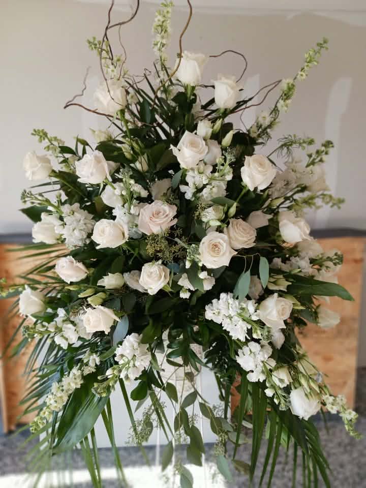 Designed in a traditional end basket style, this arrangement offers a refined and respectful presentation without being overly flashy. Its soft, harmonious blend of flowers conveys care, compassion, and sincere condolences—making it a meaningful tribute for funeral services, memorial gatherings, or celebration of life ceremonies.
